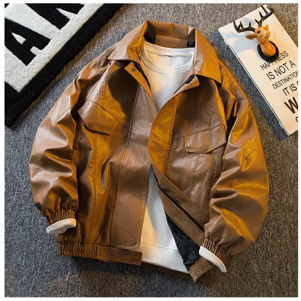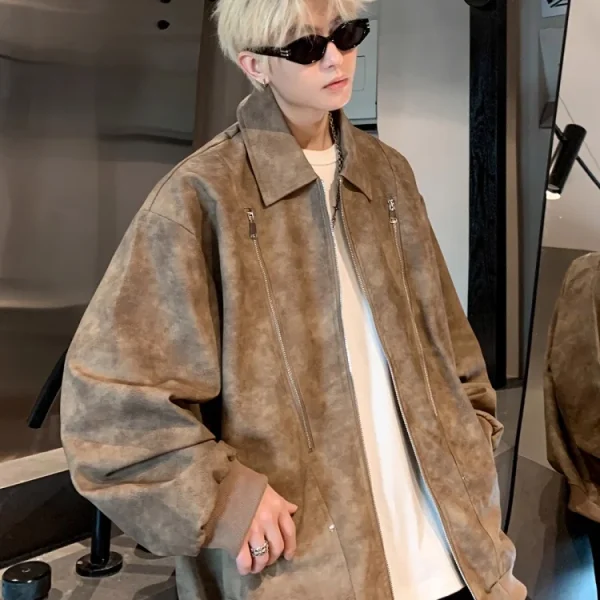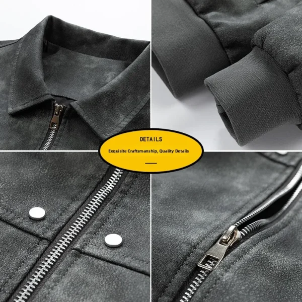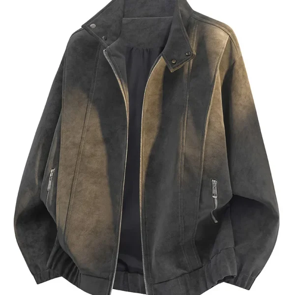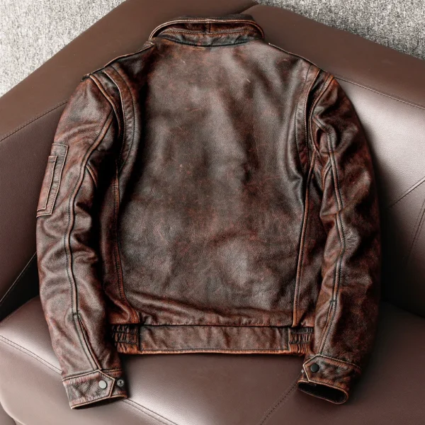 کت چرم رترو پرداخت شده Fit Zipper