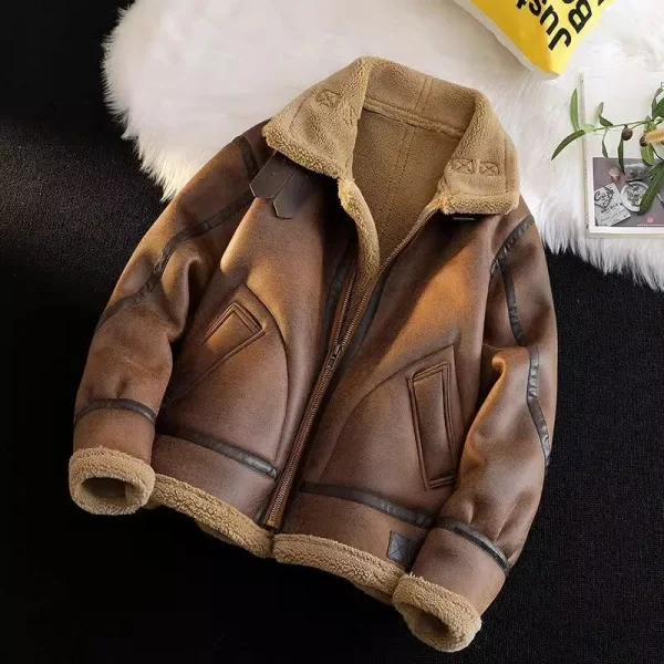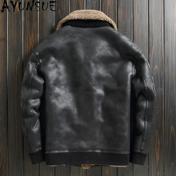 کت چرم طبیعی خلبانی پشمی AYUNSUE