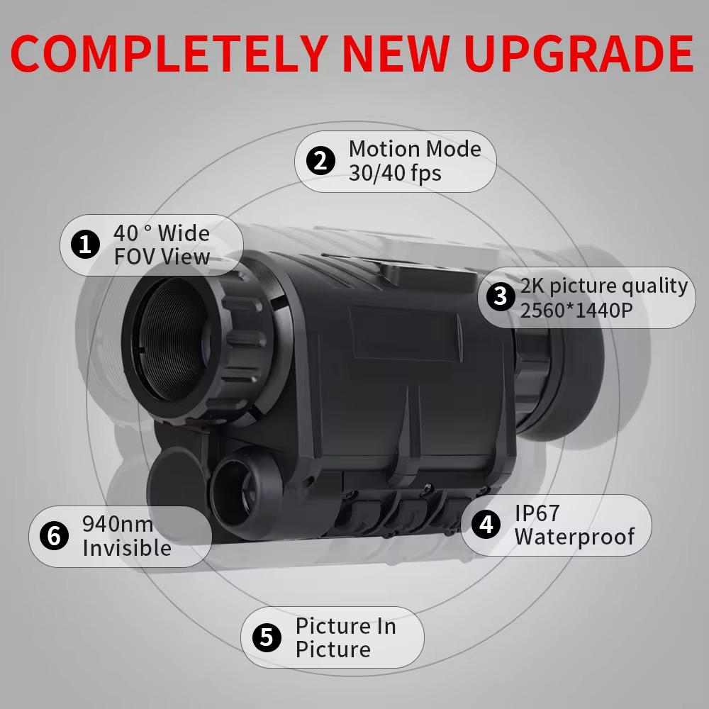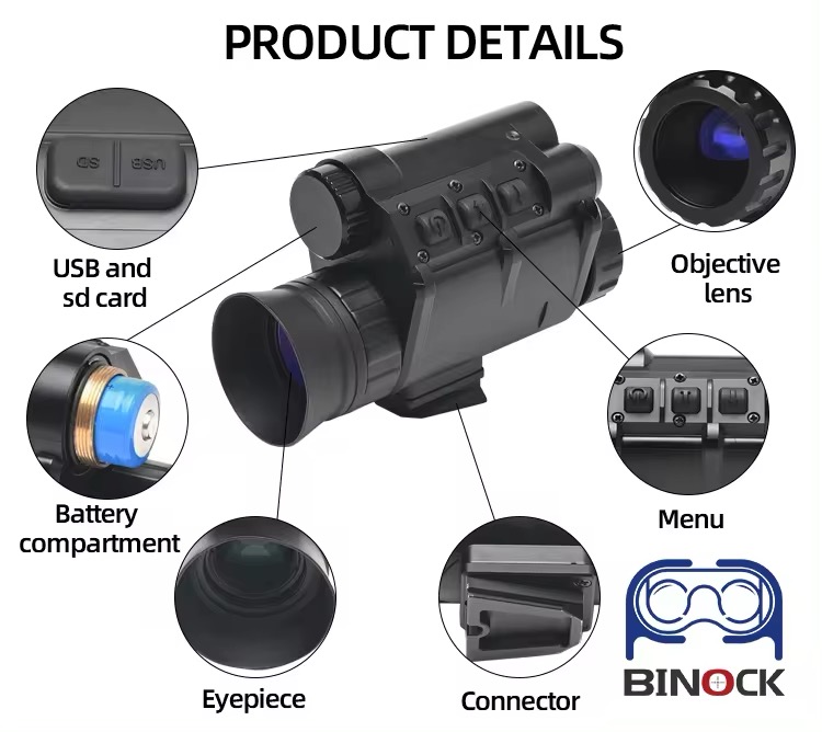 با استفاده از آلیاژ آلومینیوم، این دوربین تلسکوپی دید در شب بسیار قوی و مقاوم است. با زوم 4X واقعی این دوربین به شما اجازه میدهد تا جزئیات بیشتری را به وضوح ببینید. با داشتن نشانه داخلی برای موقعیتیابی دقیق و نور پرتابی مادون قرمز (IR)، این دوربین به شما امکان مشاهده در فواصل تا ۹۴۰ یارد را حتی در تاریکی کامل فراهم میکند. با نمایش تصویر با سرعت بسیار بالا و تاخیر کمتر از 0.01 ثانیه، تجربهی شما از دیدن تصاویر شبانه بسیار پرشتاب خواهد بود. با باتری قابل شارژ 1700mAh، عمر باتری طولانیتری خواهید داشت. این دوربین مناسب برای شکار، پیادهروی، کمپینگ، تماشای حیات وحش، نظارت و … است.