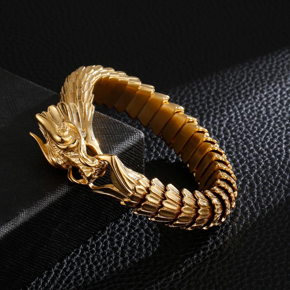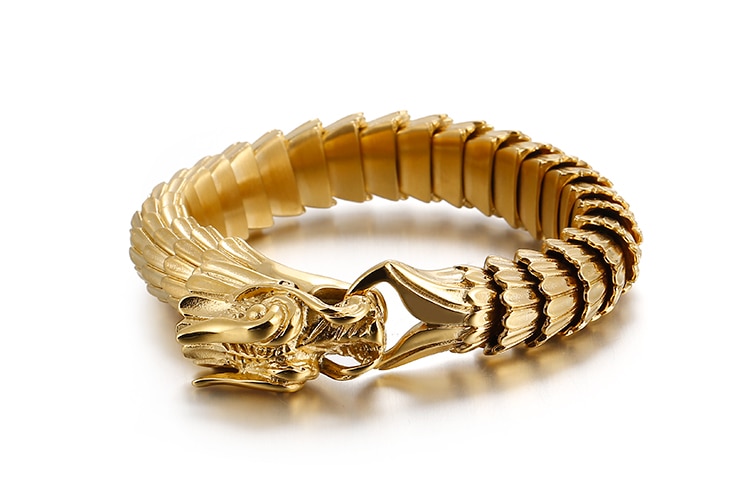 دستبند دراگون دارای بدنه انعطاف پذیر و طرح برجسته‌ی پوست اژدها است.