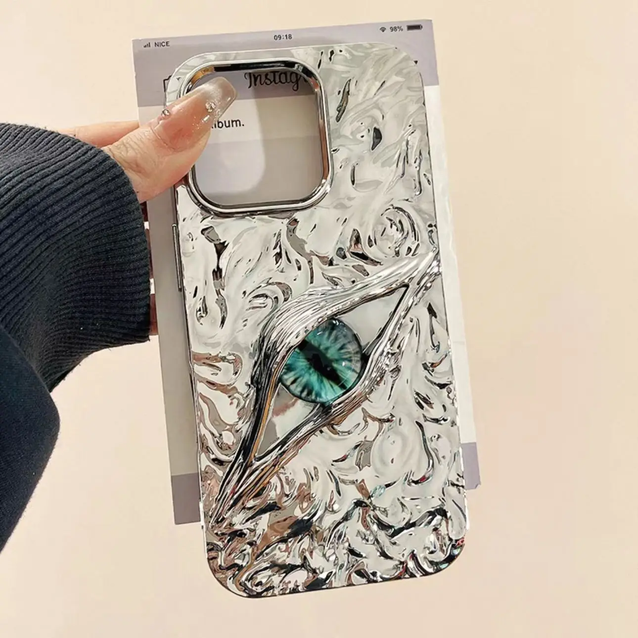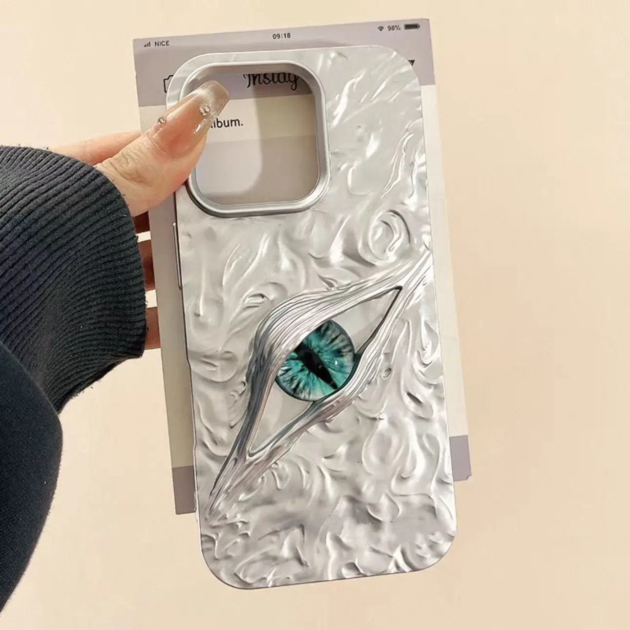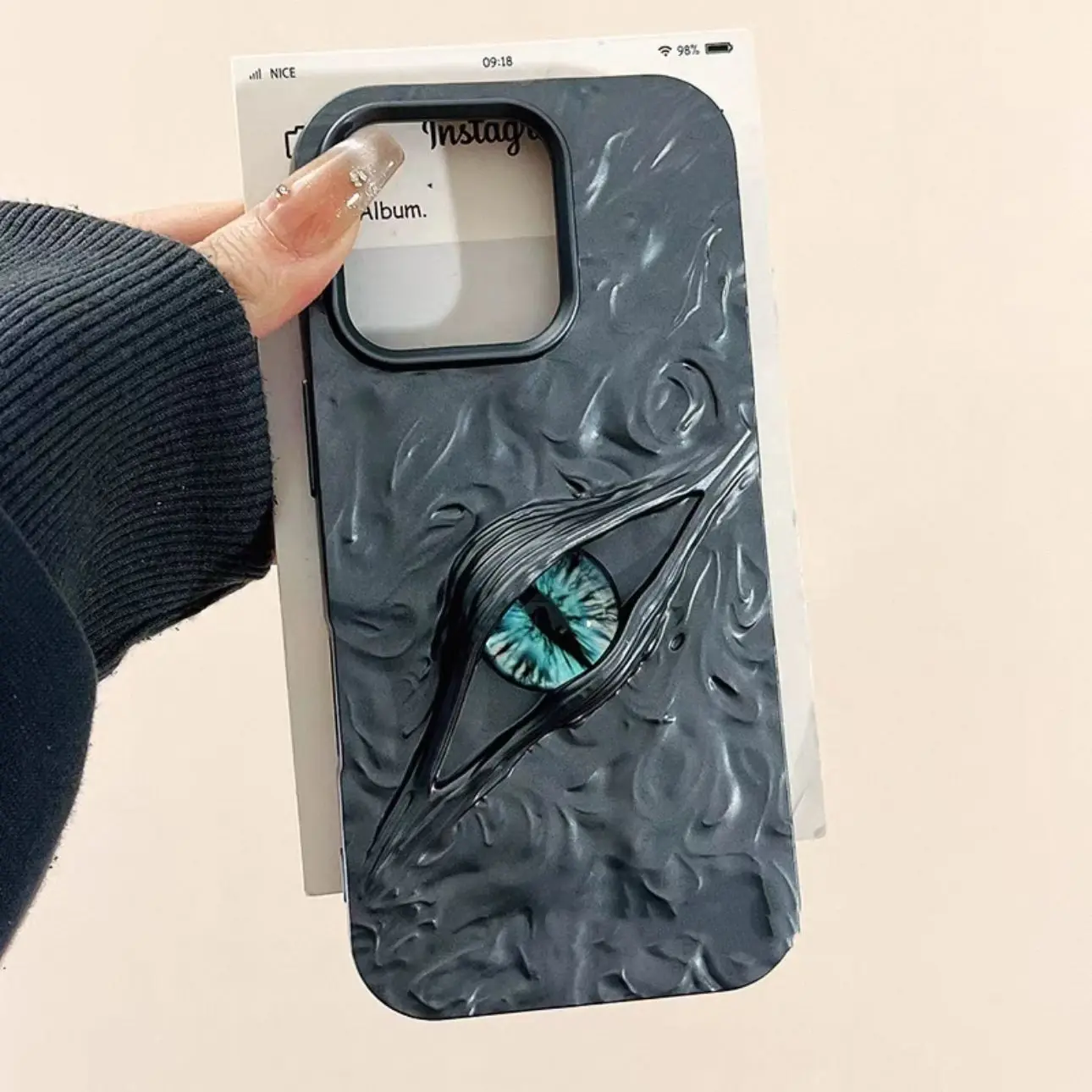Luxury Devil Eye Matte Pleat Phone Case For iPhone 17 16 15 14 13 12 11 Pro Max Plating Demon 3D Eyeball Wrinkle Soft TPU Cover