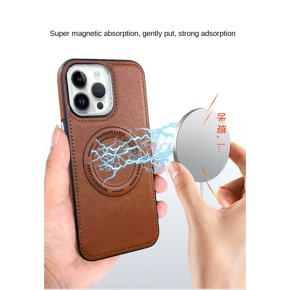 Premium Faux Leather Cover For iPhone 15 14 13 12 11 Pro Max XS XR X 7 8 Plus SE 2020 2022 For Magsafe Magnetic Phone Case