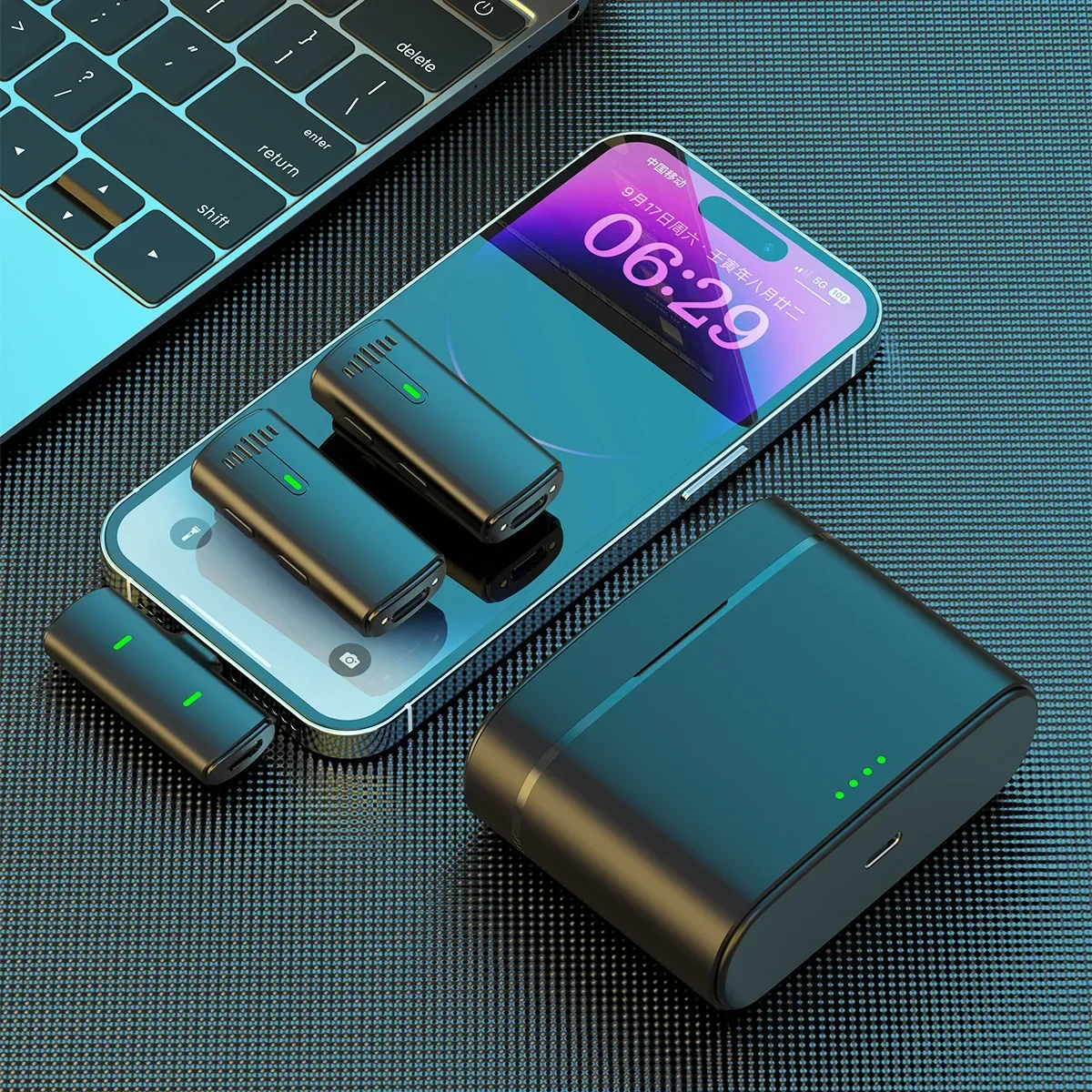 محتوایات : دو عدد میکرفون ، انتقال دهنده ، کیس شارژ ، کابل شارژ