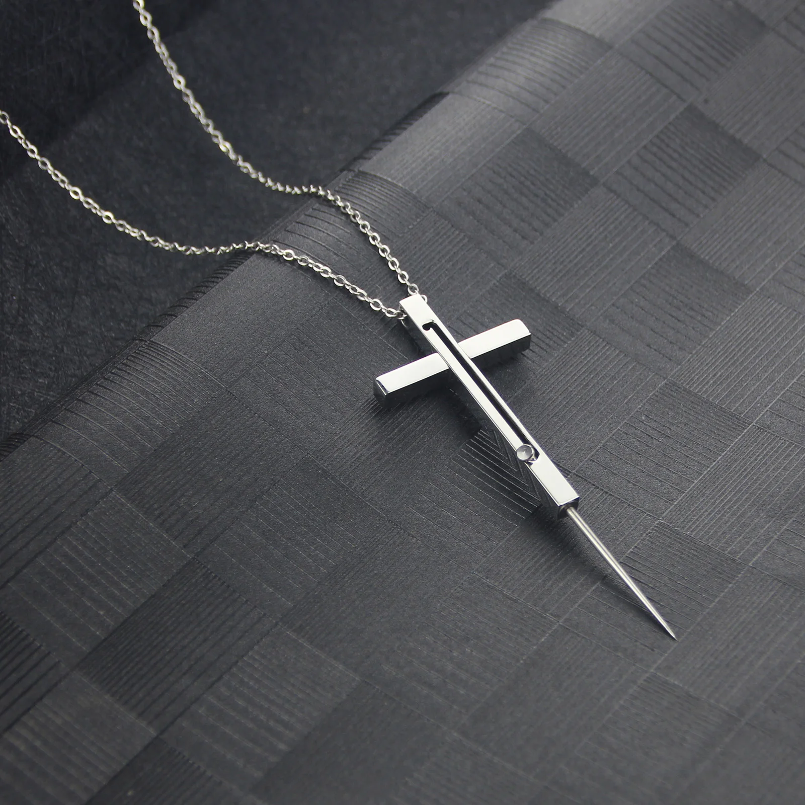 گردنبند استیل صلیب چاقو مخفی